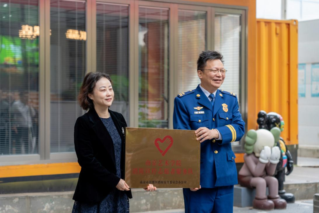 随后,张晟途为南艺“消防宣传志愿者服务队”授牌。我校消防宣传志愿者教师代表曹琳老师和学生代表黄玮同学先后发言。他们表示,将以饱满的热情投身消防宣传志愿服务,积极传播消防安全知识,为筑牢校园消防安全防线贡献力量。