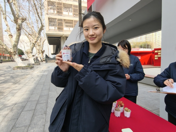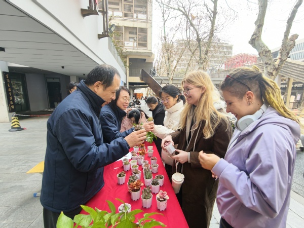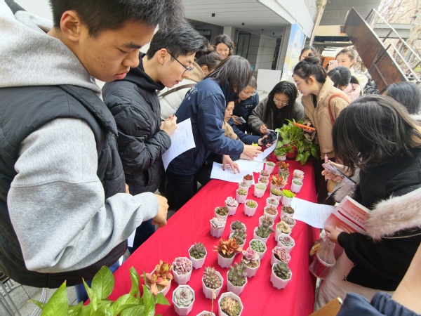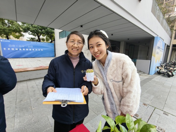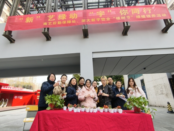 在校44和45号楼宿舍区中心空地,浙大新宇物业南艺项目部举办的绿植领养活动吸引了众多师生驻足参与。活动现场,各类多肉、小盆栽等小型绿植整齐陈列,鲜嫩的叶片让同学们爱不释手。物业工作人员提前做好准备,耐心向认领者讲解植物的生长习性和养护技巧,确保每一株绿植都能得到精心照料。大家仔细询问养护细节,认真记录注意事项,现场洋溢着热烈而温馨的氛围。领到绿植的同学纷纷合影打卡,满满的仪式感让这份绿色美好更具纪念意义。在悉心领养、亲手呵护的过程中,爱绿护绿的种子悄然播撒,让“爱护环境、呵护生命”的理念真正走进同学们心里。